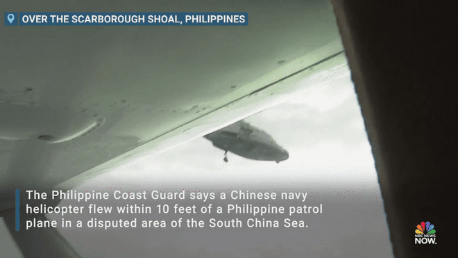 Một trực thăng của hải quân Trung Quốc đã bay cách máy bay tuần tra của Philippines 3m trên không phận xung quanh bãi cạn Scarborough (Trung Quốc gọi là Hoàng Nham) hôm 18/2, theo giới chức Manila.