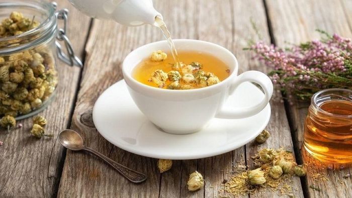 Chuyên gia khuyến nghị uống trà hoa cúc trước khi đi ngủ để làm dịu tâm trí lo lắng và thúc đẩy thư giãn.