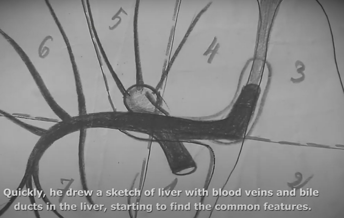 Cả trăm cái gan được phẫu tích như vậy nên thầy thuộc lòng sự phân chia của mạch máu trong gan, quan hệ của các mạch máu so với bề mặt gan”.