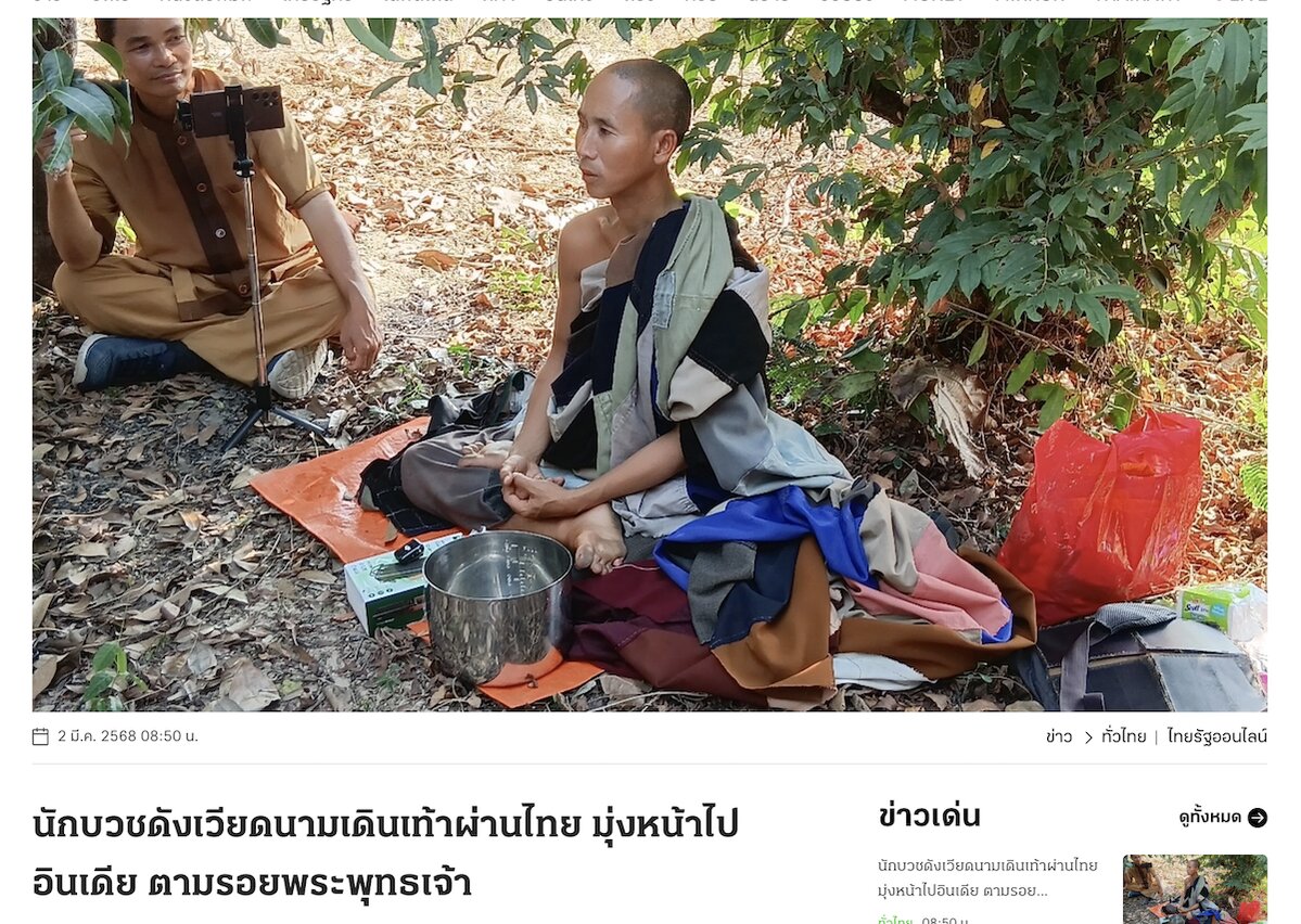 Tỉnh Kamphaeng Phet nằm cách cửa khẩu Mae Sot với Miến Điện khoảng 150 cây số, nơi đoàn bộ hành đang hướng tới. Theo bài đăng hôm 2 Tháng Ba, đoàn bộ hành hiện bao gồm 28 nhà sư, mặc y phấn tảo được ráp lại từ những mảnh vải nhiều màu sắc “trông thật kỳ lạ.”
