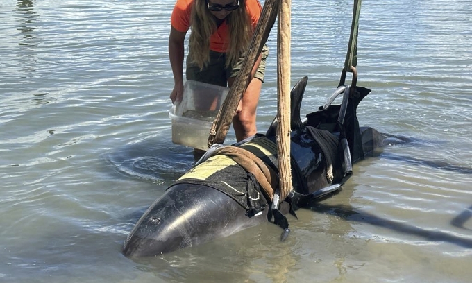 Con cá heo được nhân viên bảo tồn New Zealand thả về biển ngày 28/2. Ảnh: AP