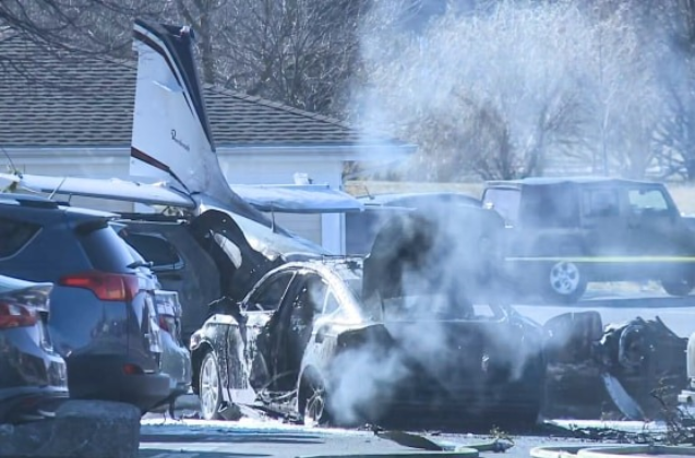 Old  Default Máy bay đâm xuống bãi đậu xe ở Mỹ, chìm trong “biển lửa”