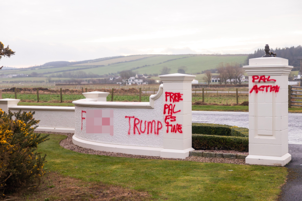 Ông Trump mua sân golf Turnberry năm 2014 với giá 60 triệu USD. Cảnh sát Scotland cho biết nhận được tin báo vào sáng sớm ngày 8/3 và đang điều tra vụ phá hoại. Phát ngôn viên khu nghỉ dưỡng nhận định "đây là hành động phạm tội mang tính trẻ con" và "đội ngũ nhân viên tuyệt vời tại Trump Turnberry đảm bảo không để nó ảnh hưởng tới hoạt động kinh doanh".