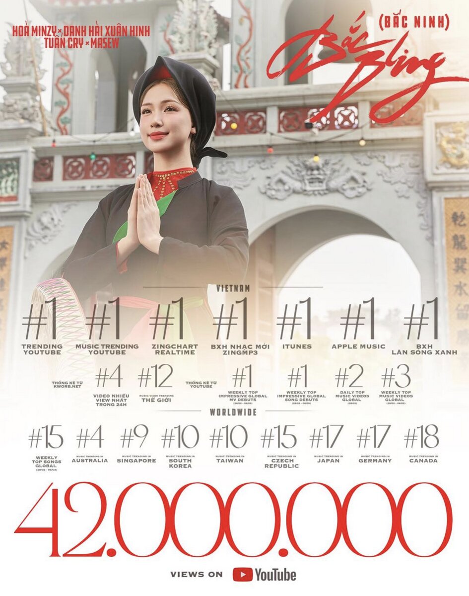 MV "Bắc Bling" của Hòa Minzy đã nhận được sự hưởng ứng nồng nhiệt từ khán giả trong nước lẫn quốc tế.