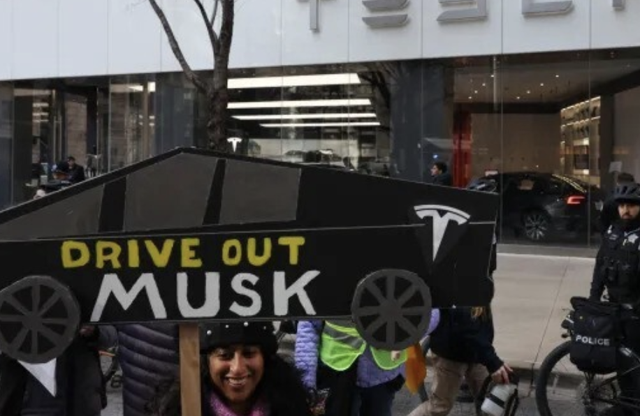 Nhiều cuộc biểu tình ôn hòa xảy ra tại các địa điểm liên quan tới Tesla, nơi người dân mang theo khẩu hiệu và hô lớn "Elon Musk hãy ra đi", đáp trả hàng loạt cắt giảm mà cơ quan hiệu suất chính phủ (DOGE) do tỷ phú Mỹ đứng đầu thực hiện gần đây.