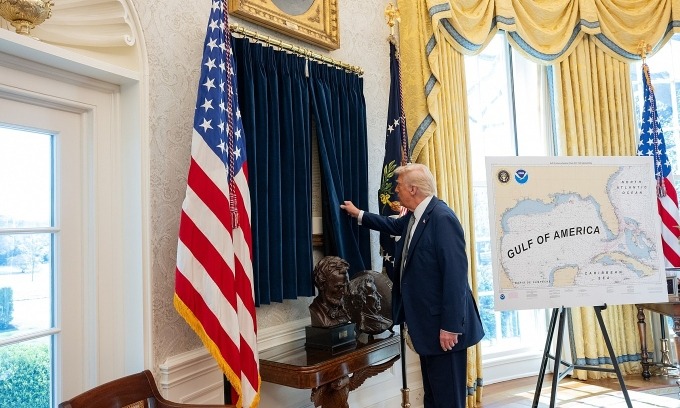 Trump's branding is unmistakable throughout the space. A large map renaming the "Gulf of Mexico" to the "Gulf of America" remains on display, and reports suggest he plans to pave over the Rose Garden to make it resemble the patio of Mar-a-Lago. Perhaps the most unconventional addition, however, is the gold-framed mugshot of Trump himself, taken in Georgia in 2023 after he was booked for allegedly attempting to interfere in the 2020 election.