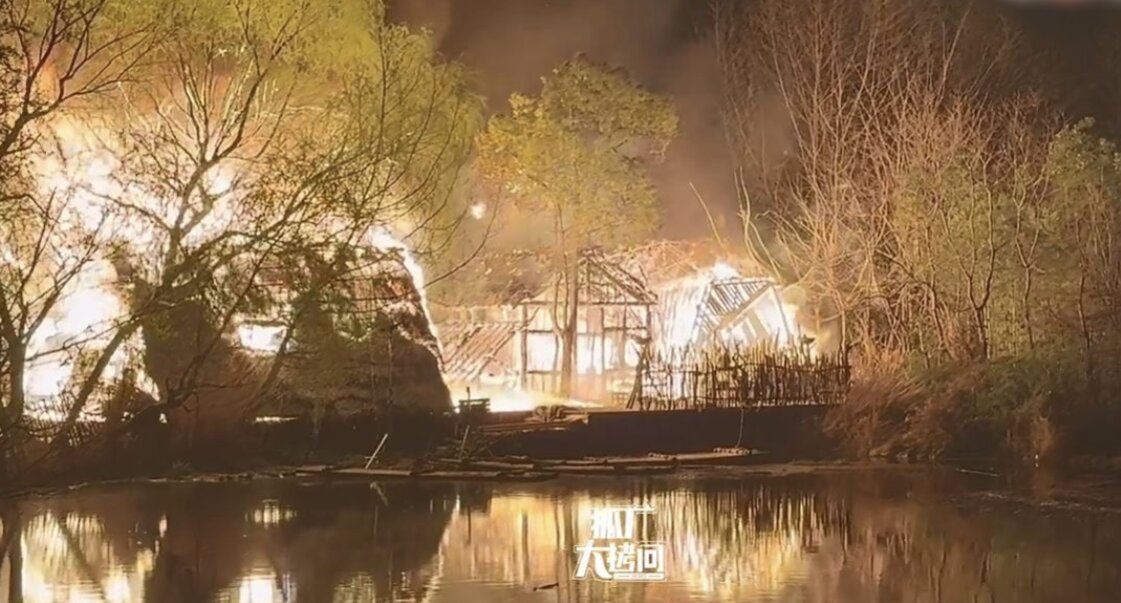 Theo Sina, đoàn phim Nguyệt Lân Ỷ Kỷ dự định quay một cảnh lửa trại. Họ đã thực hiện các biện pháp phòng ngừa hỏa hoạn nhưng gió lớn khiến lửa bén vào mái rơm của những căn nhà được dựng làm bối cạnh. Bên cạnh đó, thời tiết hanh khô khiến cây cối xung quanh dễ bắt lửa, khiến ngọn lửa lan rộng. Đã có nhiều xe cứu hỏa được huy động tới để dập tắt đám cháy.