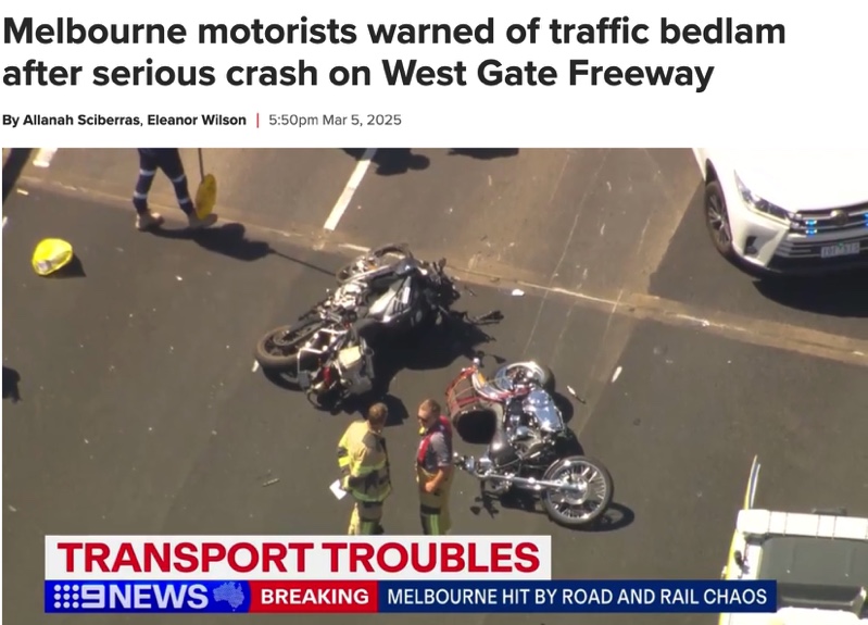 Vụ tai nạn đă khiến giao thông khắp TP Melbourne trở nên hỗn loạn, nhiều trục đường chính bị ùn tắc.