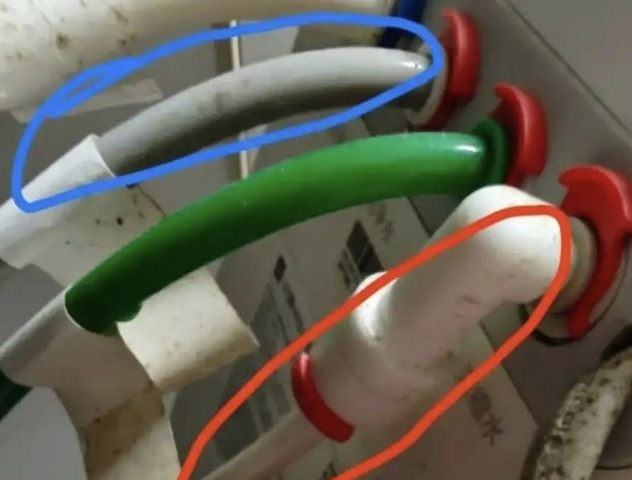 Cô Lưu phát hiện ra rằng các ống dẫn nước phía sau máy lọc đã bị lắp sai. (Ảnh: Baidu)