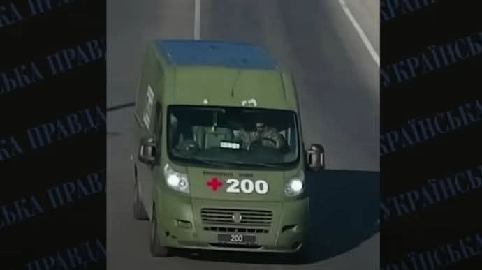 Nghi phạm được hộ tống đến biên giới trên một chiếc xe có biển báo "200", thường được sử dụng để vận chuyển những người lính Ukraine đã hy sinh.