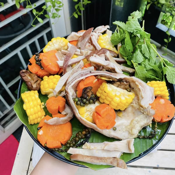 - Tiêu xanh, ớt, rau thơm ăn kèm