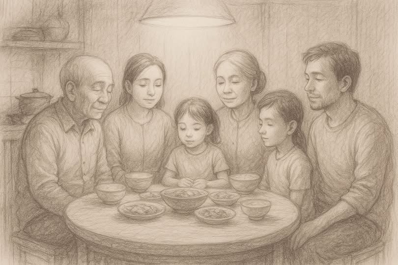Cả nhà im lặng, như vừa nuốt vào một điều gì đó không phải cơm, không phải rau, nhưng ấm đến tận lòng.