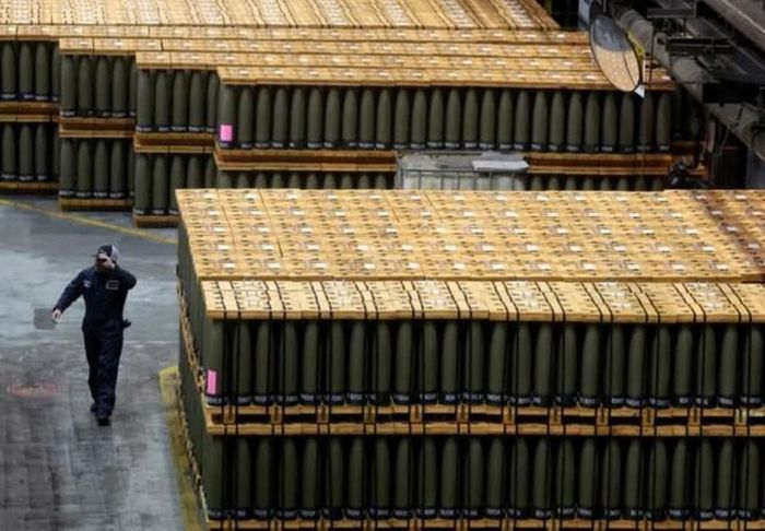 Đạn pháo 155mm tại một nhà máy sản xuất đạn dược ở Scranton, Pennsylvania, Mỹ, ngày 16/2/2023. (Nguồn: Reuters)