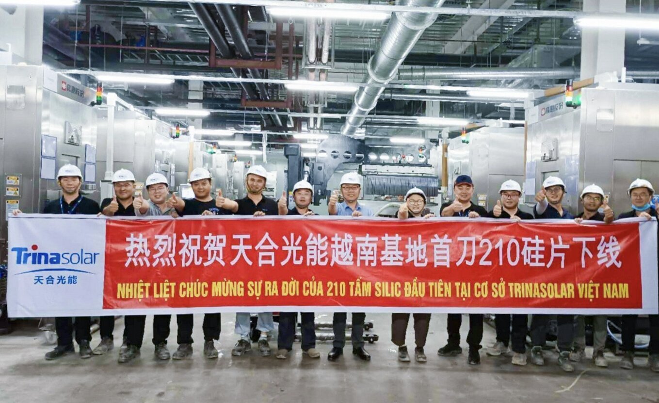 Hãng sản xuất tấm pin năng lượng mặt trời Trina Solars của Trung Quốc trong ngày khai trương một trong ba cơ sở của họ tại Việt Nam. (Hình: Trina Solar Vietnam)