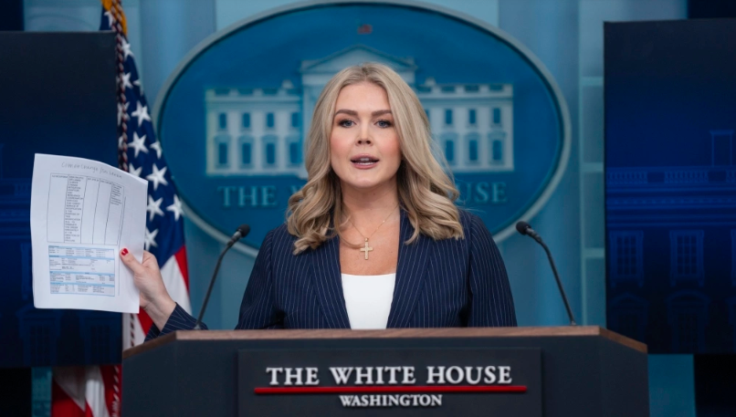 Thư ký báo chí Nhà Trắng Karoline Leavitt tại Washington ngày 12/2. Ảnh: AP