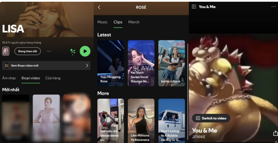 Đáng nói, hình ảnh được sử dụng là khoảnh khắc gây tranh cãi của Kiss Of Life thời gian gần đây. Không chỉ thế, phần video liên quan thuộc kênh Spotify của BLACKPINK cũng xuất hiện nhiều clip 18+ với nội dung dung tục.