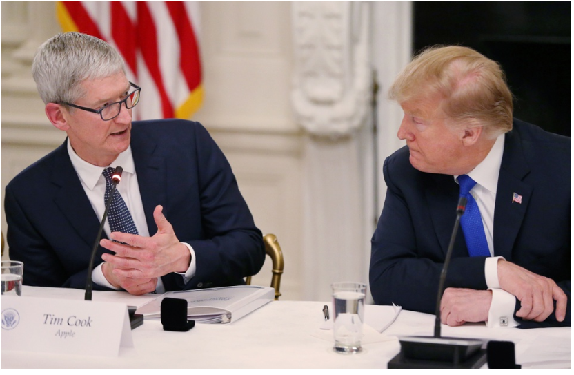 Vệc CEO Apple Tim Cook liên tục có những cuộc trò chuyện với ông Trump gây tranh cãi. Ảnh: Reuters.
