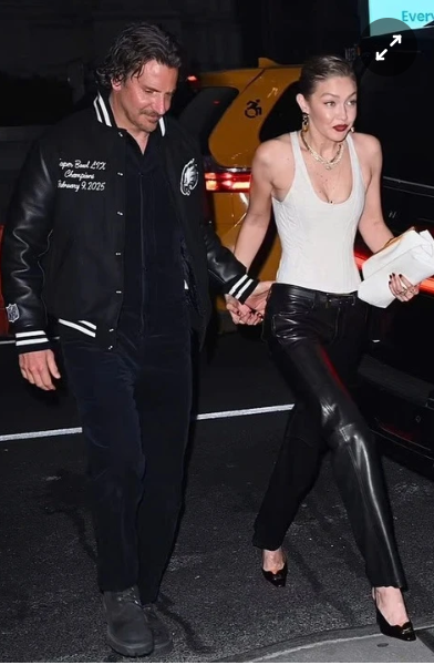 Trong loạt ảnh được giới truyền thông ghi lại, Gigi Hadid gợi cảm với áo cổ khoét sâu kết hợp quần da và giày cao gót mũi nhọn. Với Bradley Cooper, anh diện trang phục trẻ trung, tông màu đen chủ đạo.