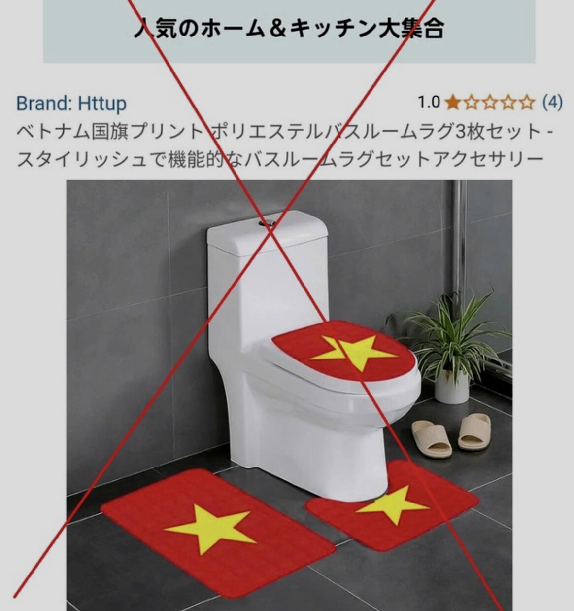 Những ngày qua người tiêu dùng phát hiện gian hàng thương mại điện tử trên Amazon rao bán thảm đậy nắp bồn cầu, thảm lau chân trong nhà tắm… in hình quốc kỳ Việt Nam.