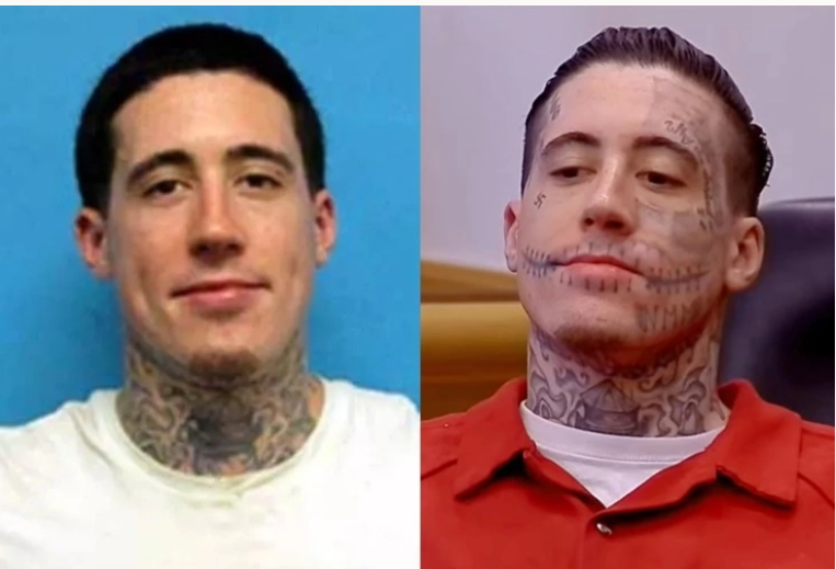 Wade Wilson trong ảnh đăng trên trang web của Sở Cải huấn Florida (trái) và trên phiên tòa tuyên án. Ảnh: Florida Department of Corrections/Law & Crime