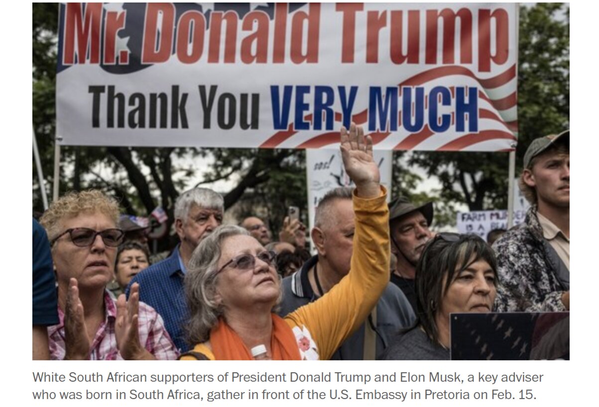 Việc những người Afrikaner lên kế hoạch đến bắt nguồn từ nỗ lực của Trump nhằm cân nhắc đến chính trị chủng tộc phức tạp của Nam Phi, nơi tỷ phú Elon Musk, cố vấn trước đây của ông giám sát việc cắt giảm chi tiêu liên bang lớn, đã lớn lên trong thời kỳ phân biệt chủng tộc.