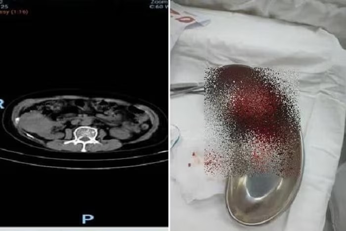 Các bác sĩ Bệnh viện Nhân dân 115 thực hiện siêu âm bụng thì phát hiện một khối u kích thước 75 x 60mm ở cực trên thận phải nữ bệnh nhân. Sau khi chụp CT có tiêm cản quang, khối u được chẩn đoán nghi ngờ là ung thư biểu mô tế bào thận (RCC) chưa có dấu hiệu xâm lấn ra ngoài thận trên hình ảnh học.
