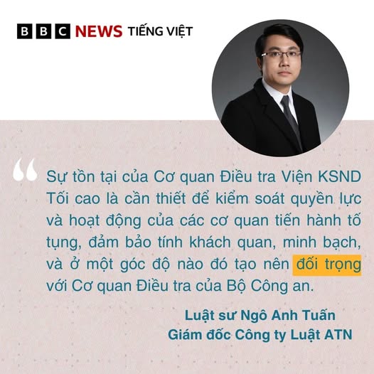 Ý kiến luật sư cho rằng cần giữ lại cơ quan điều tra của Viện Kiểm sát Nhân dân Tối cao như một thế đối trọng với Bộ Công an