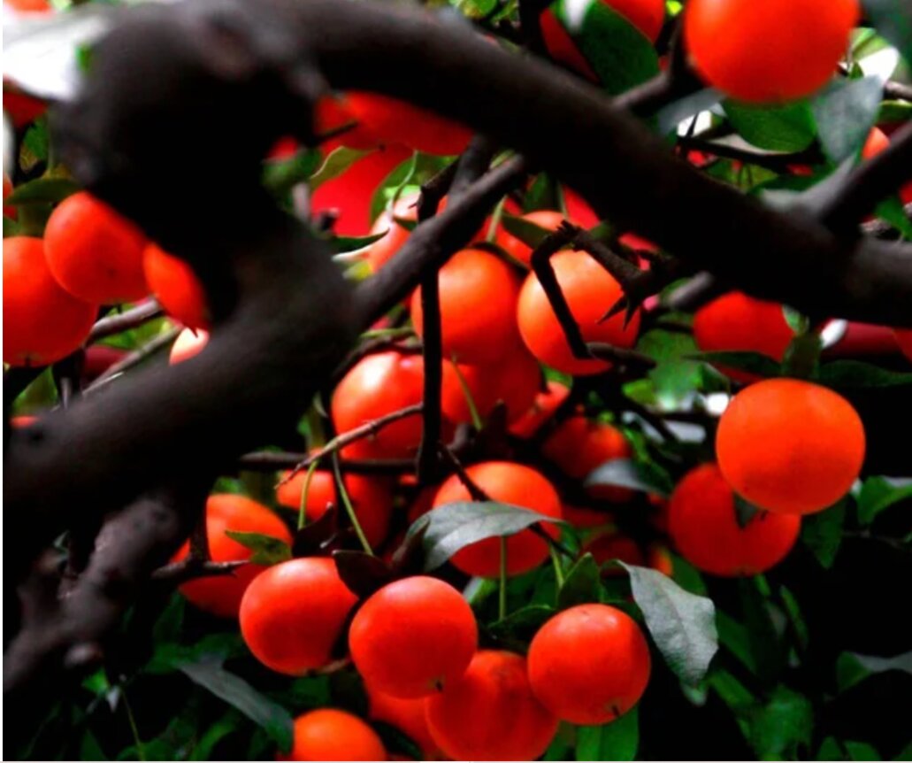 Những nhánh cây xoắn và rối rắm trông giống như những vết mực đông đặc. Khi những nụ hoa mới nảy mầm vào mùa xuân, chúng trông giống như những viên ngọc lục bảo tô điểm cho cành cây. Khi quả màu đỏ ra đời vào mùa thu, chúng giống như mã não treo ở giữa.