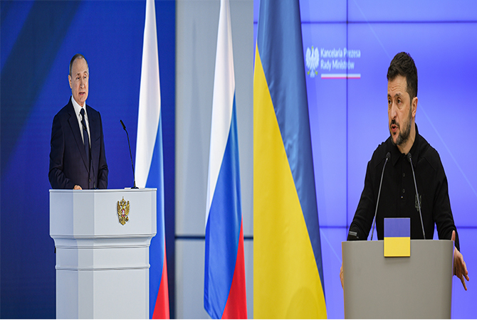 Tổng thống Nga Vladimir Putin (trái) và Tổng thống Ukraine Volodymyr Zelensky.