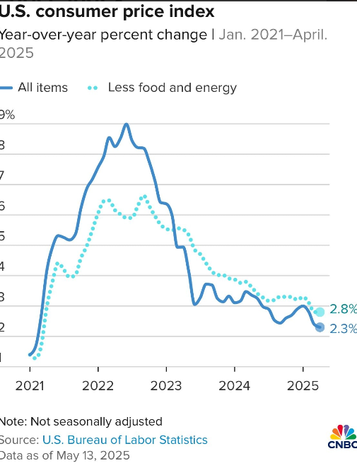 Lạm phát tại Mỹ bất ngờ hạ nhiệt trong tháng 4, chỉ tăng 2,3% so với cùng kỳ năm ngoái, thấp hơn dự đoán của Dow Jones là 2,4%. Con số này ngày một tiến gần hơn tới mục tiêu 2% của Cục Dự trữ Liên bang (Fed). Đây cũng là mức tăng thấp nhất kể từ tháng 2/2021.