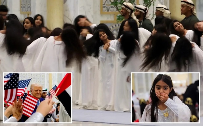 Đích thân Tổng thống Sheikh Mohamed bin Zayed Al Nahyan đã đón tiếp ông Trump trọng thể sau khi chuyên cơ của Tổng thống Mỹ hạ cánh xuống UAE ngày 15/5. Buổi lễ chào đón mang đậm bản sắc văn hóa địa phương bằng điệu múa Al-Ayyala với hình ảnh các nghệ sĩ mặc trang phục truyền thống: phụ nữ trong những chiếc váy trắng nhịp nhàng tung mái tóc dài, nam giới di chuyển theo đội hình hàng ngang, đồng bộ với nhịp trống dồn dập, tay cầm đạo cụ hình thanh kiếm, tái hiện một cảnh tượng trận chiến giả lập.
