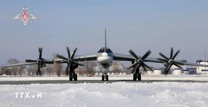 Máy bay ném bom Tu-95MS tham gia một cuộc diễn tập tại Nga hồi năm 2022. (Ảnh: AFP/TTXVN)