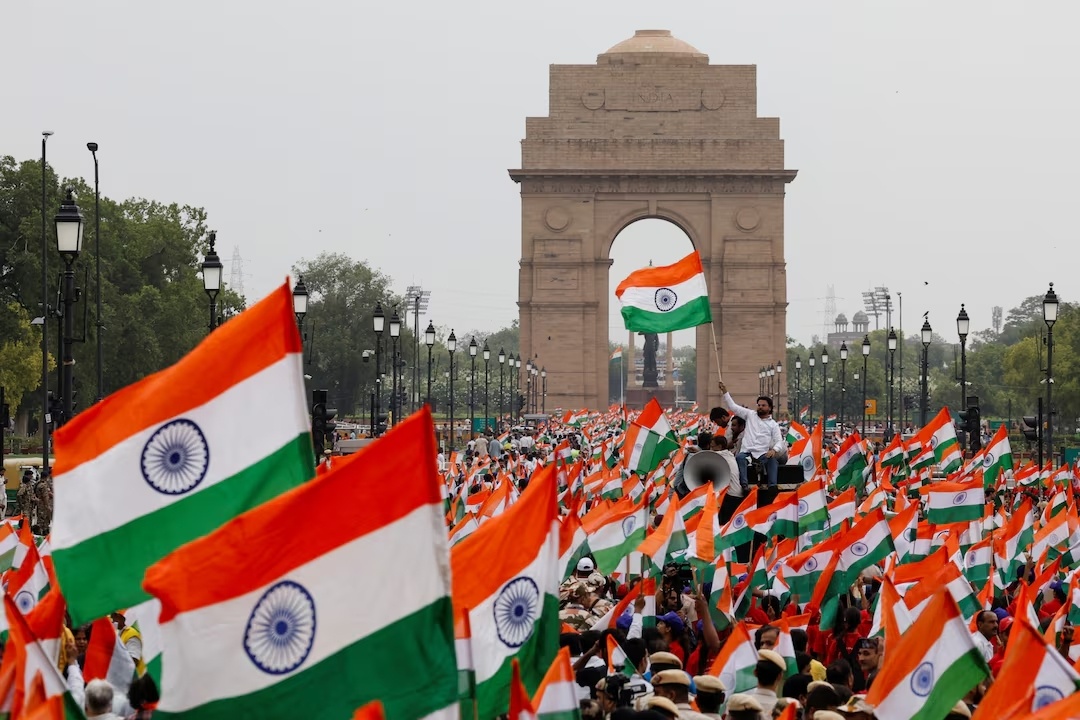 Người dân vẫy cờ ủng hộ Lực lượng vũ trang Ấn Độ sau thông báo ngừng bắn hôm 13/5. Ảnh: Reuters.
