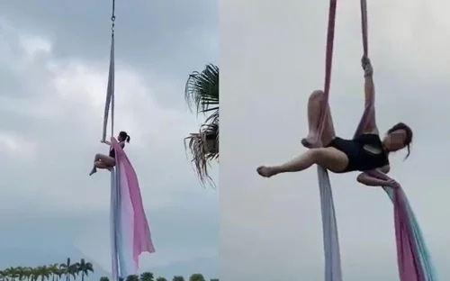 Theo như cảnh quay cho thấy người phụ nữ, mặc trang phục bó sát giống đồ bơi, đang treo lơ lửng trên không trung bằng dây đai yoga được nâng lên bằng xe cần cẩu, hoàn toàn không có bất kỳ thiết bị bảo hộ nào. Người phụ nữ này bị chỉ trích gay gắt vì hành động khó hiểu và nguy hiểm của mình gây cho cộng đồng mạng bức xúc.