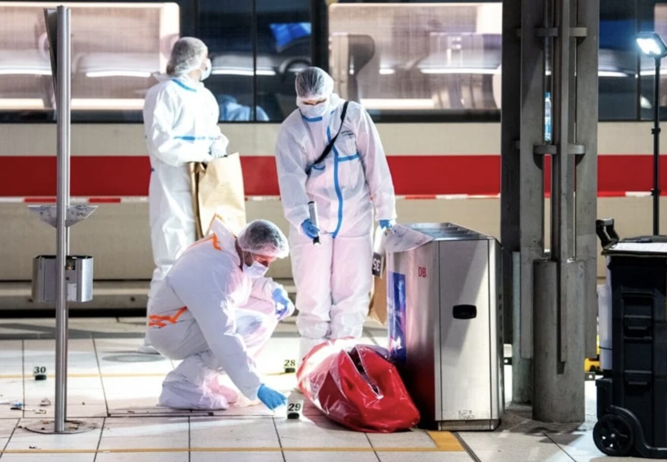 Các chuyên gia pháp y đang kiểm tra hiện trường tại nhà ga trung tâm ở Hamburg sau vụ tấn công bằng dao khiến nhiều người bị thương, một số người trong tình trạng nguy kịch. Ảnh EPA