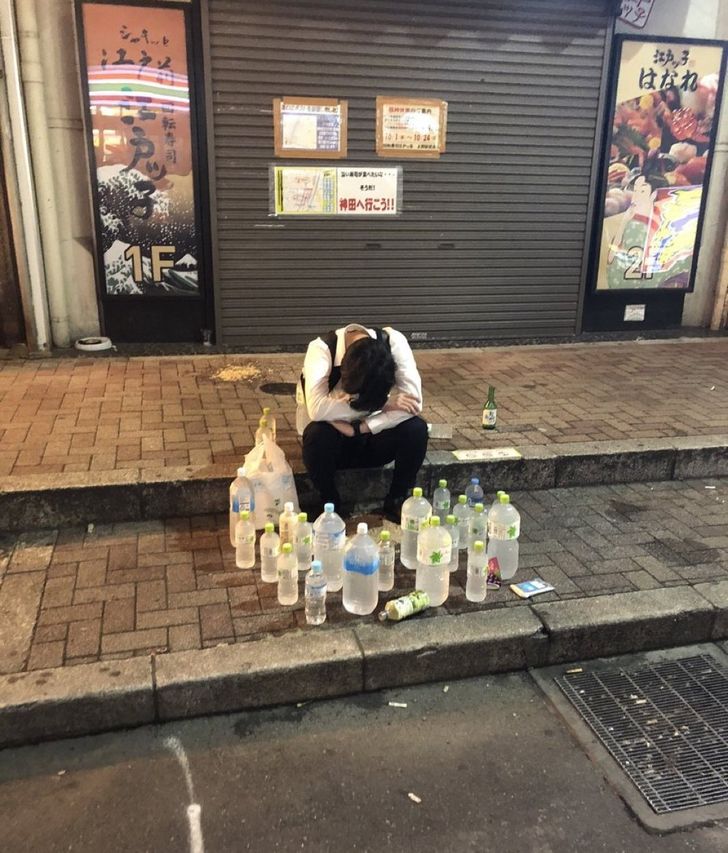 Trong những tình huống như vậy, người Nhật thường thể hiện sự quan tâm bằng cách giúp đỡ người say bằng cách để lại nước uống hoặc các loại đồ uống khác để họ có thể tỉnh táo hơn. Một bức ảnh gần đây được chia sẻ rộng rãi trên X đã thu hút sự chú ý lớn, cho thấy một khía cạnh đặc biệt của "văn hóa" này. Bức ảnh ghi lại cảnh một người đàn ông say rượu đang ngủ trên đường phố, xung quanh anh là những chai nước được đặt một cách cẩn thận thành vòng tròn.