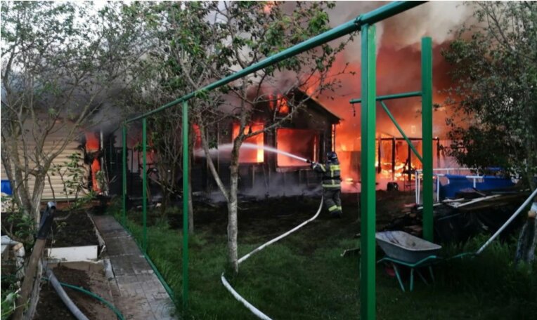 Một khu nhà bị cháy ở tỉnh Moskva sau đòn tập kích UAV Ukraine đêm 27, sáng 28/5. Ảnh: Văn phòng tỉnh trưởng Moskva
