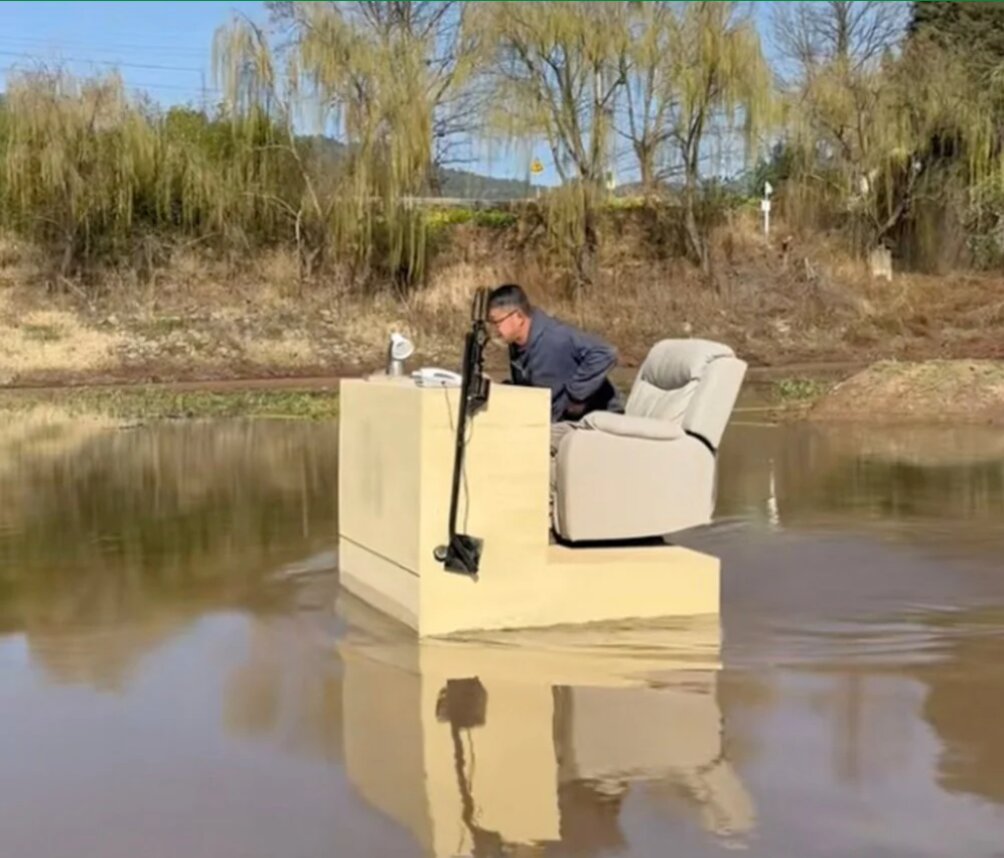 Một phát minh đáng chú ý khác là chiếc xe “bàn làm việc” di động, thiết kế dành riêng cho những người làm việc linh hoạt. Xe được trang bị đầy đủ bàn làm việc, ghế bành và đèn bàn – đúng với tinh thần “làm việc mọi nơi, trong mọi điều kiện”. Chiếc xe này còn có khả năng nổi trên mặt nước, tích hợp lò nướng BBQ và thiết bị bắt cá, giúp người dùng vừa làm việc vừa thư giãn và thưởng thức bữa ăn ngay tại chỗ.