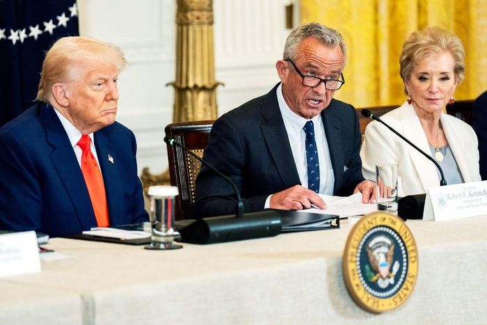 Bộ trưởng Bộ Y tế và Dịch vụ Nhân sinh Robert F. Kennedy Jr. (giữa) phát biểu trong sự kiện của Ủy ban Làm cho Nước Mỹ Khỏe mạnh Trở lại tại Nhà Trắng vào ngày 22/5. Ảnh: Washington Post.