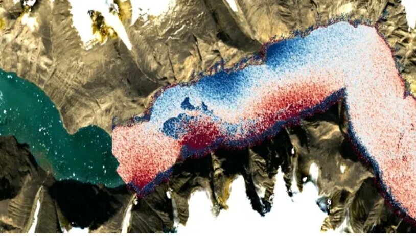 Một tảng băng lớn phía sau vịnh tan chảy, dẫn đến các vụ lở đất trong vịnh hẹp. Hình ảnh từ mặt đất và vệ tinh đã lần theo dấu vết, cho thấy vụ lở đất này đã tạo ra các đợt sóng lớn, được gọi là seiche (sóng dừng).