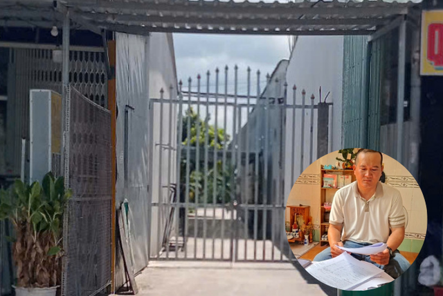 Bên ngoài điểm giữ trẻ nơi xảy ra sự việc và ông Đỗ Sơn – cha ruột của bé Đ.L.M.C. Ảnh: Tuổi Trẻ & Vietnamnet