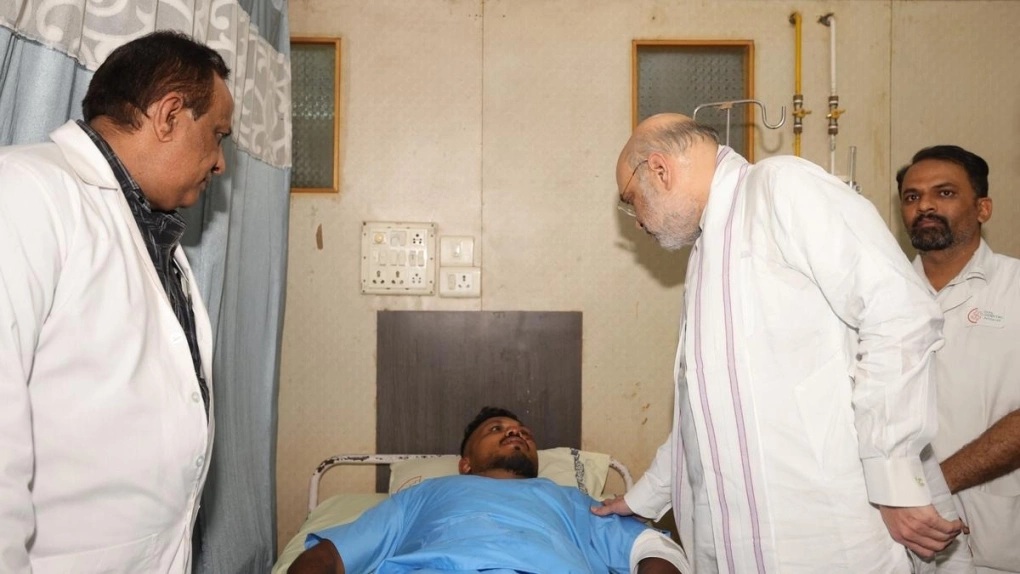 Bộ trưởng Nội vụ Ấn Độ Amit Shah thăm Vishwash Kumar Ramesh tại bệnh viện ngày 12/6. Ảnh: X/AmitShah