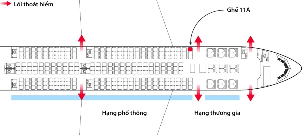 "Vị trí 11A nằm ngay cửa thoát hiểm số 2 trên chiếc Boeing 787-8", ông Galea đánh giá. "Hành khách có thể dễ dàng tiếp cận và mở cửa".