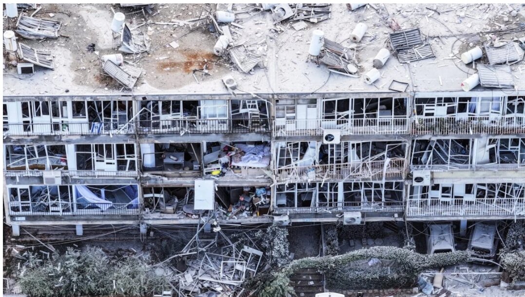 Hình ảnh từ máy bay không người lái cho thấy thiệt hại tại Bat Yam, Israel sau cuộc tấn công bằng tên lửa từ Iran ngày 15/6. Ảnh: Reuters.