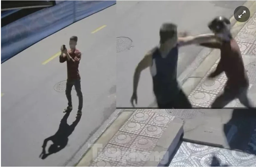 Để bạn biết vị trí đang đứng chờ, thanh niên đă dùng điện thoại chụp ảnh đường. Sau đó một người đàn ông đă chạy tới đấm, đá túi bụi v́ cho rằng anh này chụp ảnh ḿnh.