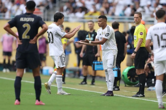 Kylian Mbappe vào thay Gonzalo Garcia trong trận Real thắng Juventus 1-0 ở vòng 1/8 FIFA Club World Cup trên sân Hard Rock, Miami, Mỹ ngày 1/7/2025. Ảnh: Lejournaldureal