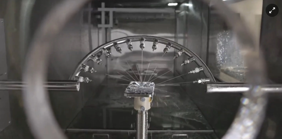 Thiết bị chuyên dụng để thử nghiệm khả năng chống nước của iPhone. Ảnh: @MKBHD/X.