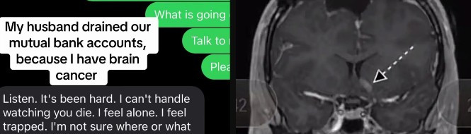 Chị Marie, sống tại Mỹ, đã kể câu chuyện của mình trên mạng xã hội TikTok và Reddit, kèm theo ảnh phim chụp cộng hưởng từ (MRI) cho thấy trong não chị có khối u, cùng với đoạn tin nhắn mà người chồng gửi sau khi anh ta bỏ đi.