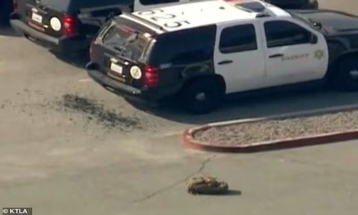 Đoạn video ghi lại sự việc cho thấy một chiếc xe của cảnh sát Los Angeles bị vỡ kính chắn gió phía sau và một chiếc ba lô có thể được nhìn thấy trên mặt đất gần đó.
