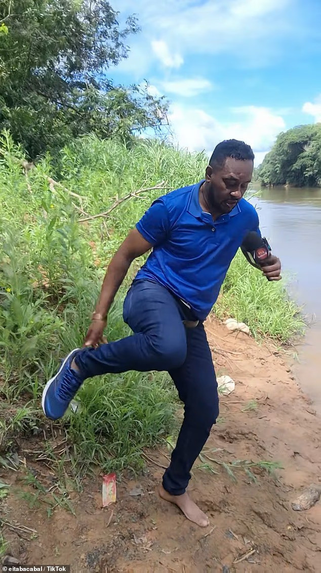 Để khán giả hiểu rõ hơn về độ sâu và dòng chảy nguy hiểm của con sông, Frazão đã không ngần ngại lội xuống dưới nước.